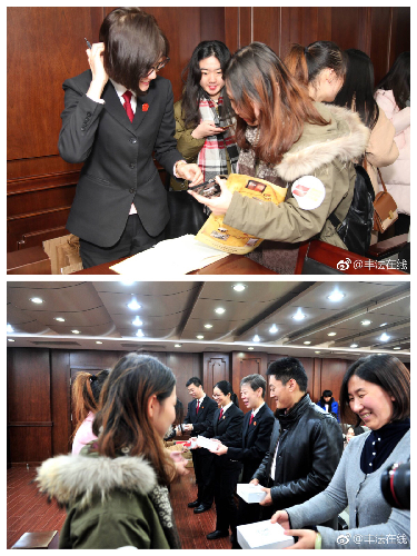 最后一项活动就是大家最期待的“丰法寻宝”活动。大家人手一张寻宝图,在六个地点中找齐四个合影留念并发微博打卡,用时最短者获胜。大家快速行动,在众多地点都留下了身影。在这一过程中大家更加熟悉了丰台法院也加深了对它的感情。寻宝时间转瞬即逝,副院长崔秀春、庭长王平英、庭长杨薇和两位人大代表共同为五位“寻宝小达人”颁发纪念大奖。