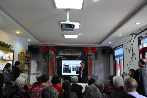 随着讲座渐入高潮,石刚教授结合北京独特的自然风貌和佛教文化,以图片、文字配合生动的讲解,带领居民们逐一领略了北京八大名刹的风采。其中有京城最古老的寺院法源寺、中国佛教协会所在地广济寺、北京最美的寺院潭柘寺、“天下第一坛”戒台寺、以现存最大的铜质卧佛闻名的卧佛寺,以房山石经蜚声世界的云居寺,闹市中的净土白塔寺以及京城最大的喇嘛庙雍和宫。谈到佛教文化,石刚教授说:佛教与儒教和道教共同构成了中国传统文化的三大主干。佛教的人生哲学可以净化人心,稳定社会。同时,佛教的救世情怀、入世精神在今天仍然具有普世意义! 居民们对石刚老师的讲座报以了热烈的掌声。