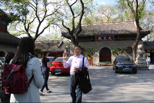 活动结束后,部分师生和社区居民一同前往西四社区所辖的广济寺。石刚一边带领大家参观这座具有代表性的佛教寺院,一边为大家解释寺庙中的建筑和文化。刚刚听完讲座,再来细细品味和感知广济寺积淀的文化意蕴,大家有了不少收获和感悟。