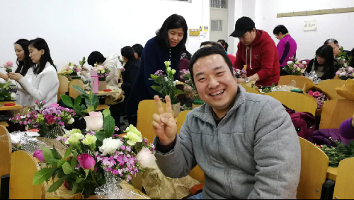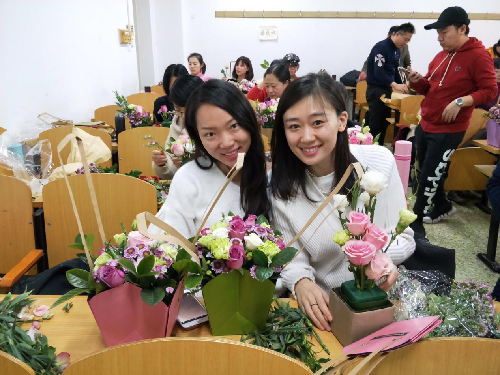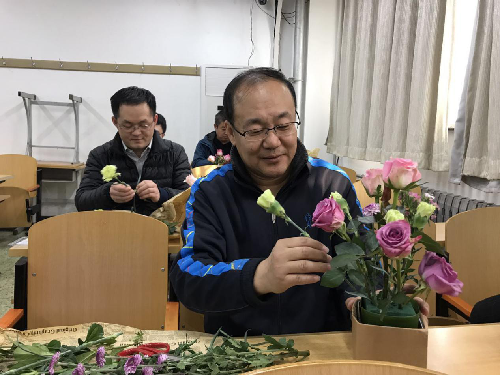 3月7日下午,慎思楼120教室,花香弥漫。五楼自拍 分工会以一场别开生面的插花活动,庆祝国际妇女节的到来。
