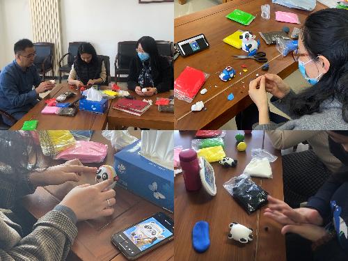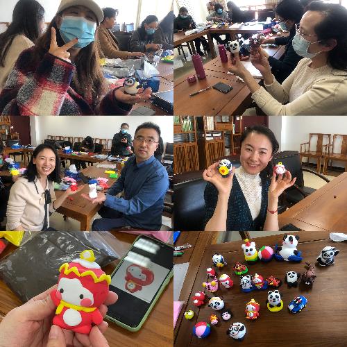 活动中,老师们有的在网上寻找图片对照制作,有的发挥想象力自行创作,不一会儿就有了雏形,这时大家开始兴奋起来,把一开始的不自信抛之脑后。憨态可掬的冰墩墩、调皮可爱的雪容融、惟妙惟肖的小老虎……经过大家的“精雕细琢”,一个个巧妙构思、形态各异的作品生动地呈现出来,大家互相欣赏,互相称赞。