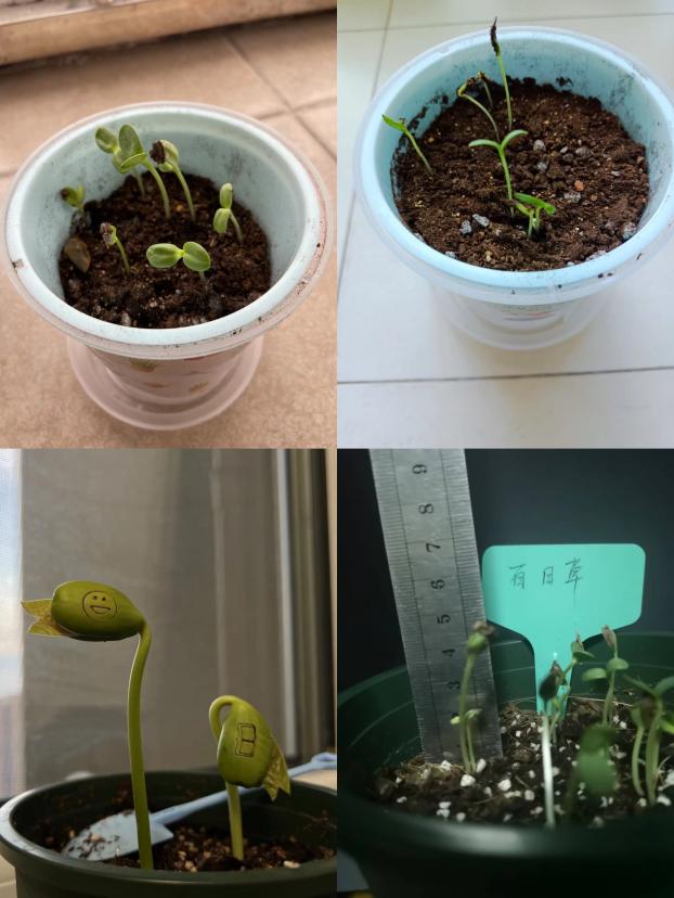 通过大家的努力,一盆盆绿植都萌发出嫩嫩的小芽。虽然受到疫情影响,大家无法到校一起交流种植经验,但老师们还是将自己用心种出的嫩芽拍照发到学院群中,一起分享喜悦。凤仙花、波斯菊、向日葵、勿忘我、魔豆等十几种植物的嫩芽展现在大家的面前,大家纷纷点赞、互动。