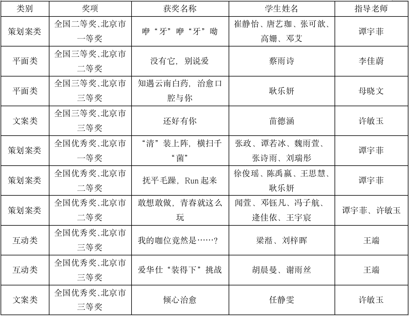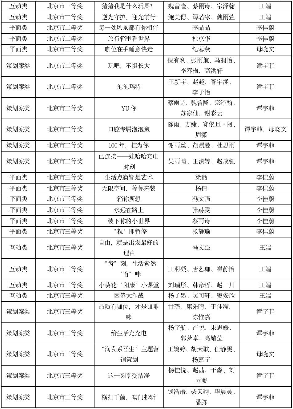 大广赛北京赛区获奖名单