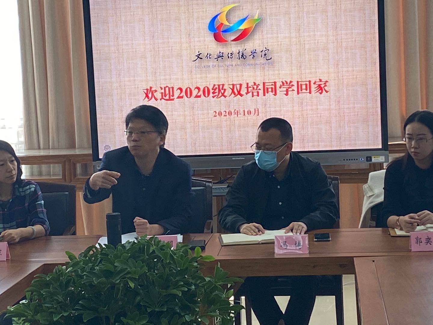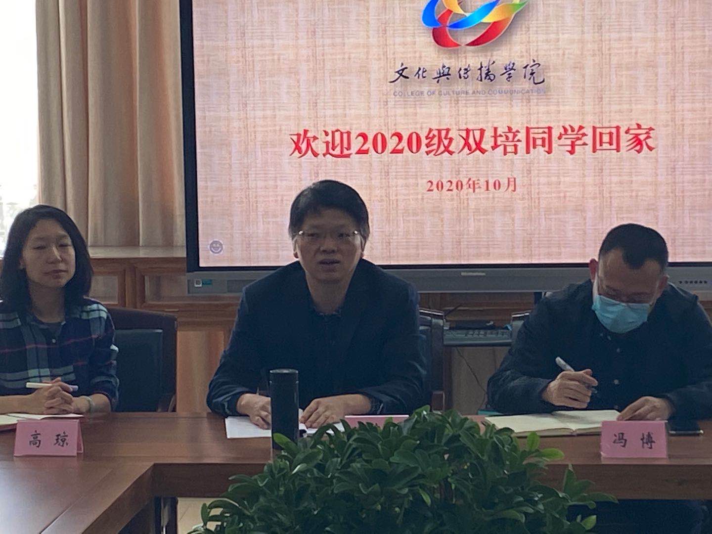 2020年10月18日上午10点10分,文9化与传播学院在博远楼506举行了2020级双培生返校座谈会。出席本次会议的有五楼自拍 党总支书记冯博、副院长陆彦明、党总支副书记高琼、分团委书记郭奕彤,以及文传学院2020级双培生。