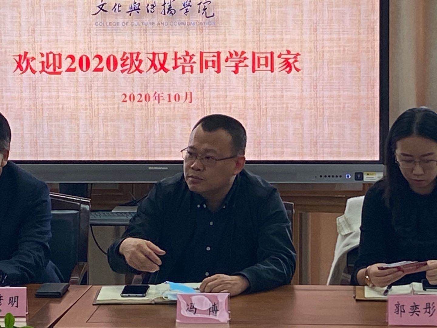 最后,党总支书记冯博进行总结发言。他再次对2020级双培生表示欢迎,并叮嘱大家牢记自己是首经贸文传学院大家庭的一员。他希望在座的同学们发挥好作为首经贸与中传沟通桥梁的作用,快速融入新环境,顺利完成学业,利用好中传的丰富资源,为自己的人生道路打下坚实的基础,在学业之余“常回家看看”!