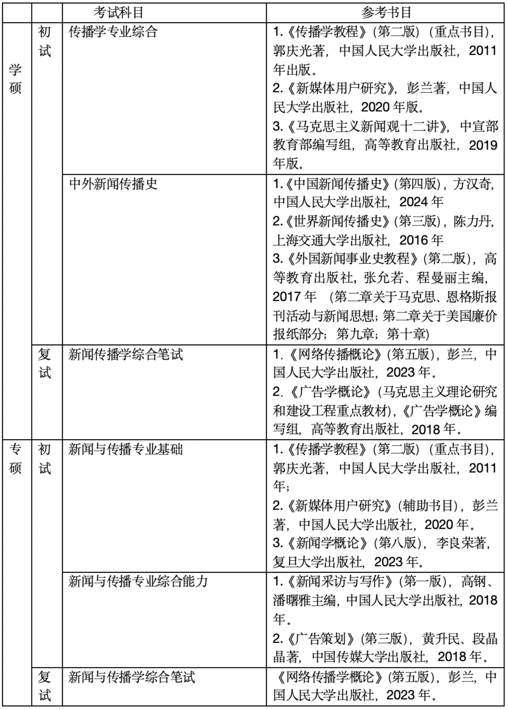 六、考试科目及参考书目