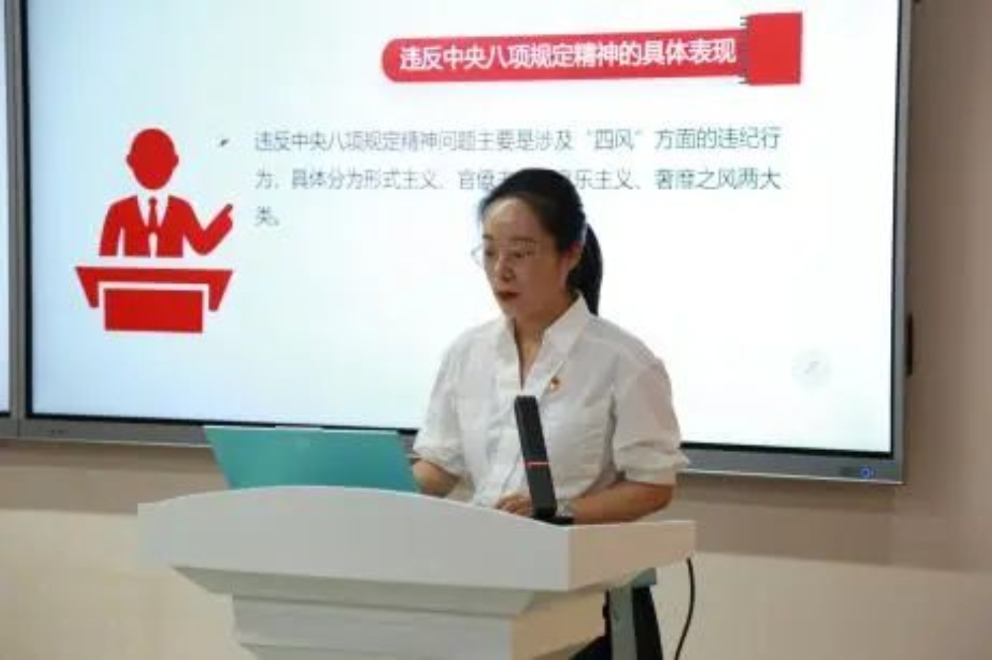 文传学院副院长许敏玉从什么是中央八项规定入手进行了中央八项规定精神导学,强调了中央八项规定的精神实质是厉行勤俭节约、反对奢侈浪费和奢靡之风廉洁从政、工作作风务实等。随后,广告学系教师刘念为大家介绍了违反中央八项规定精神具体表现及相关党纪条规。导学结束后,党委书记石刚围绕违反中央八项精神的典型案例做了警示教育