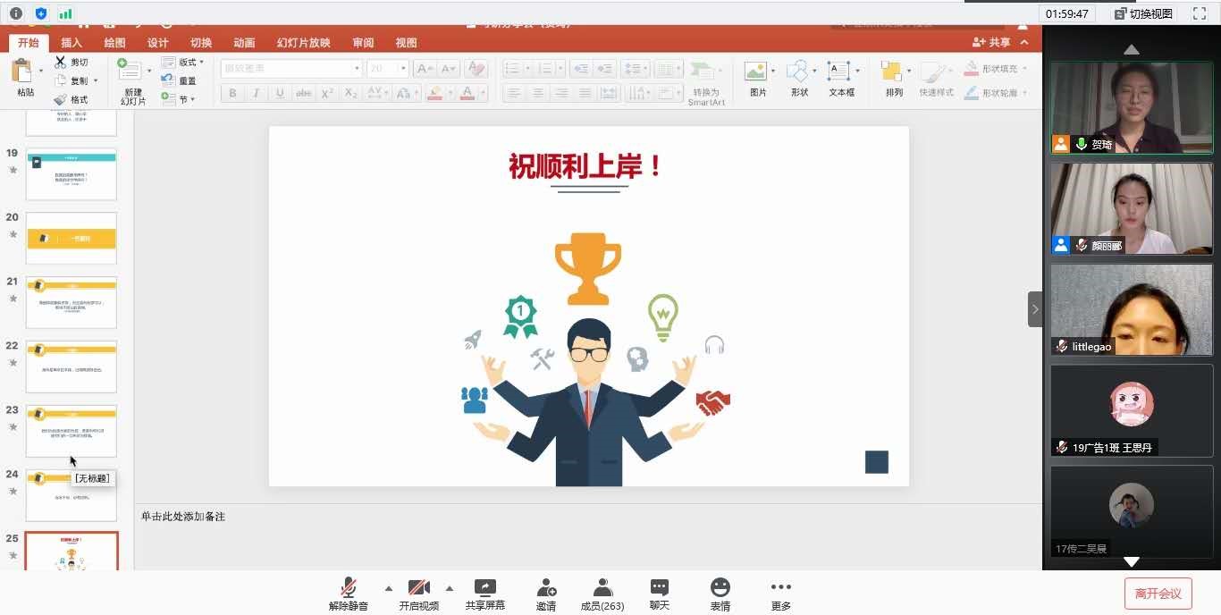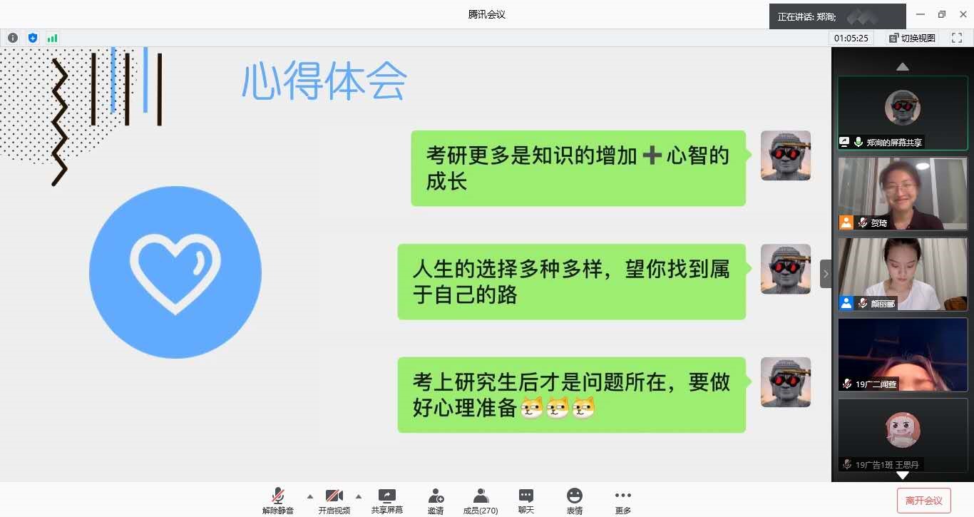 分享结束后,兼职辅导员贺琦结合学院历年考研的情况为同学们展示和解读了考研现状。最后,党总支副书记高琼老师总结并发表了她对考研的诸多建议。