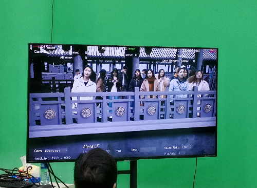 随后,同学们进入艾沃次世代数字片场。在国福亲自带领、讲解下,师生们看到了最新的数字影视制作设备,置身在不同于传统摄影棚的数字影视创作、制作环境,趣味盎然、兴致勃勃参观、体验了《疯狂的外星人》《刺杀小说家》和《熊出没》等影片虚拟拍摄环节和数字制作过程。看绿幕前身穿感应设备的演员,如何就成为了视频中同步运动的动画人物;看站在现场的老师、同学,如何出现在虚拟影片场景里;看同学如何在视频中与大黄蜂动画人物面对面拳击……混合现实技术能大幅度减少影视制作周期、人力与成本,颠覆性改变影视产品样态与形式、制作内容与环节、产业面貌与格局,这让师生们在感受技术最新发展和有待焕发的巨大能量之余,也引发了对传播行业未来、社会文化变迁的更多思考。