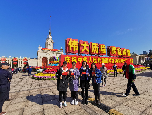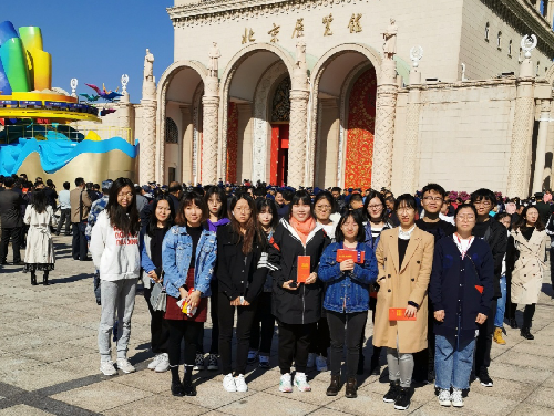 2019年10月15日上午,五楼自拍 专职辅导员尹可心带领学生代表来到北京展览馆参观“伟大历程 辉煌成就——中华人民共和国成立70周年”大型成就展。