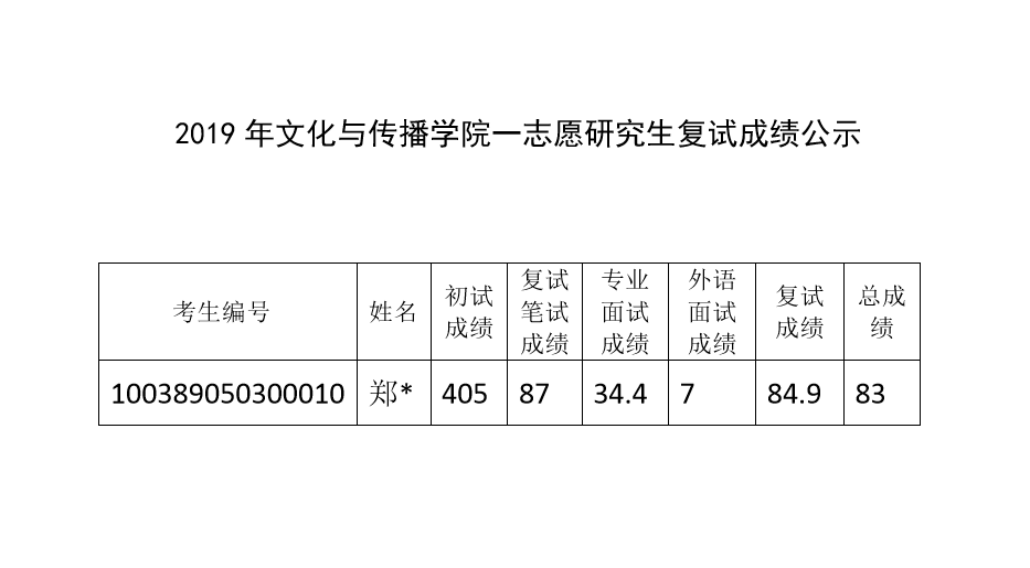 2019年五楼自拍 一志愿研究生复试成绩公示