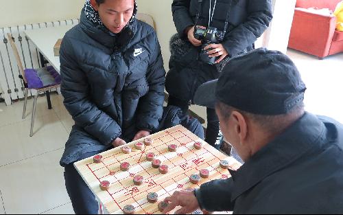 通过谈话,我们了解到老人们对自己的生活还算满意,同时也有着自己的喜好。有的老人和学生谈着自己关心的时政,有的老人谈着自己平时的爱好。而秦久博同学更是和一位老人聊起了象棋,老人兴起之时竟然回屋拿来棋盘,与他厮杀了三盘。这种跨岁月的爱好何其难得,使得许多同学来到他俩周围观战。临近离开时,这场“战争”才以老爷爷2:1获胜而结束。