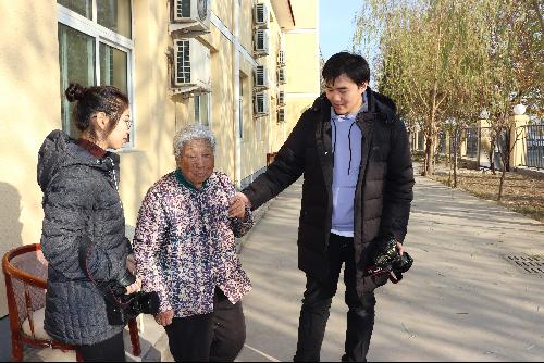 志愿者团的学生与老人聊的热火朝天,而宣传部的则负责给老人们照相。学生们用专业设备,结合自身所学,为老人们照出一张又一张的照片。待过几天洗出来后,这将成为两代人的珍贵的回忆。