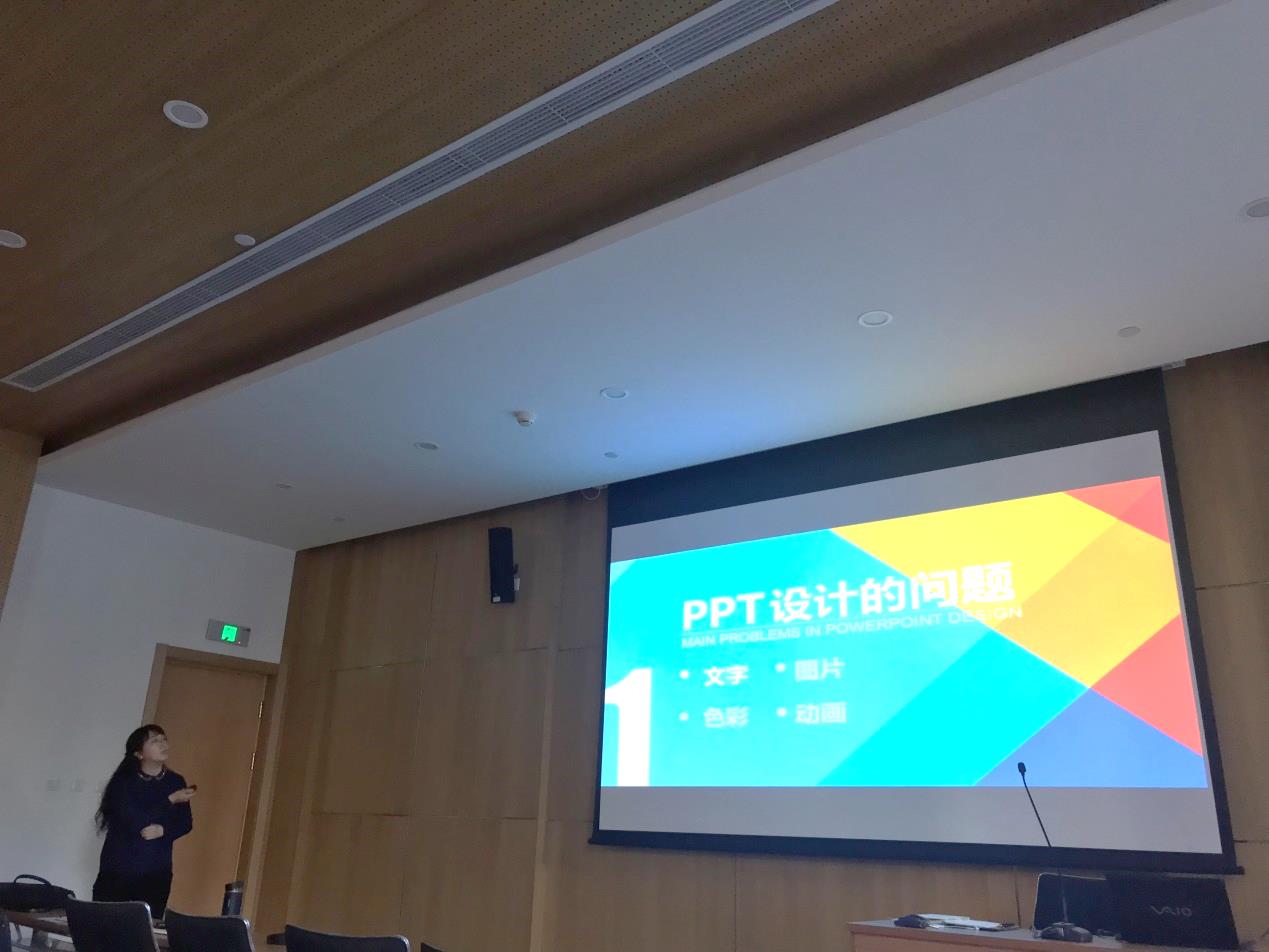 接下来,学院广告系王端老师,就如何制作和使用PPT向全院的老师们进行了分享。王端从专业的角度,用大量的事例向老师们展示了PPT制作过程中容易出现的一些问题,并讲述了一个好的课件的一些基本标准。老师们认真聆听,并纷纷表示会在之后的教学工作中对于自己的课件进行改进,努力提升整体教学的效果。