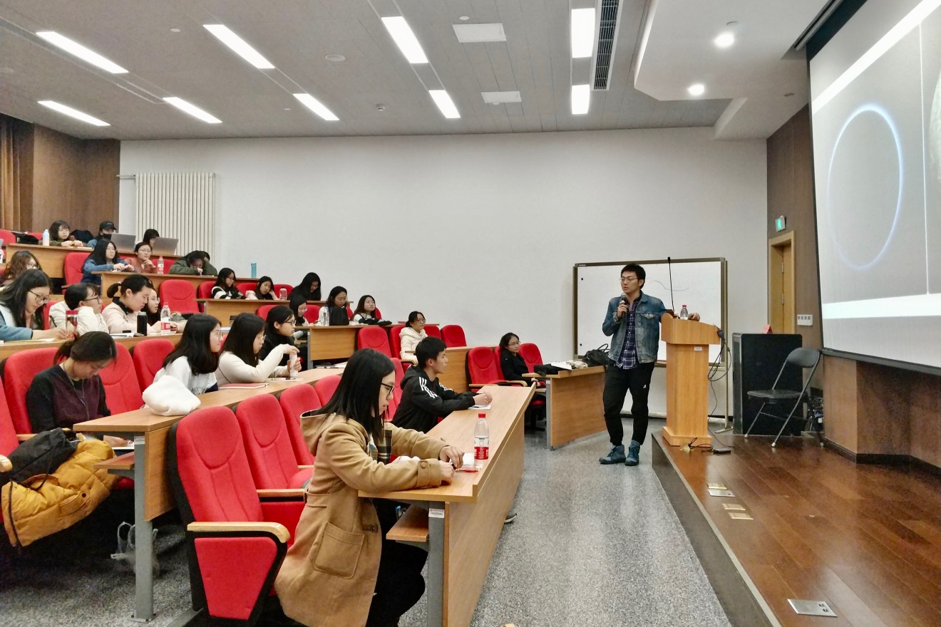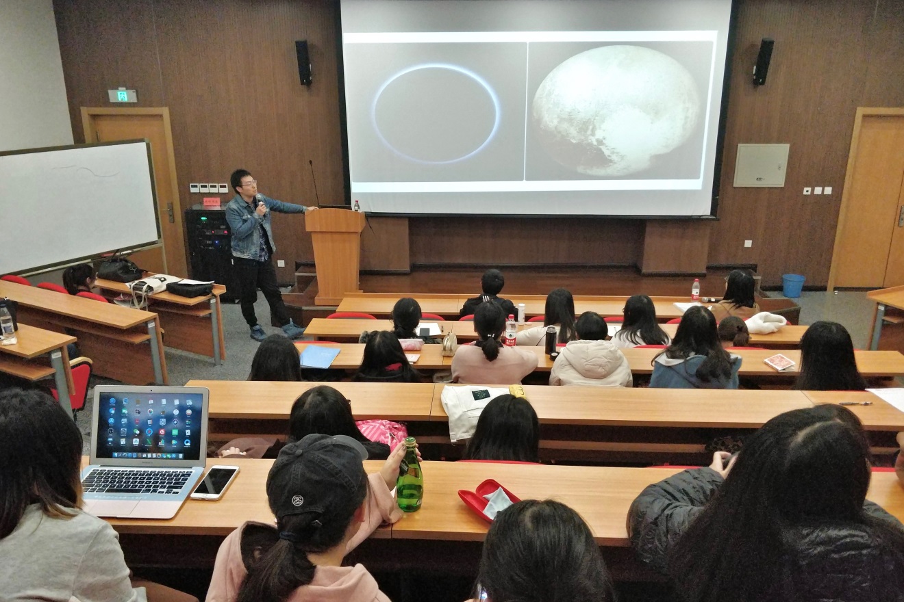 讲座伊始,庄胜春展示了两张不同角度拍摄的冥王星图片,借此说明新闻报道是一件需要以不同视角观察的事情。他由今日头条在价值观问题上的转变,讲到滴滴、摩拜、ofo依靠自身转变在市场中占据一席之地。