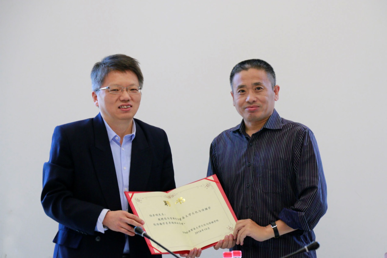 10月17日下午,2017级传播学卓越班导师聘任仪式在博远楼1号会议室举行。来自新华社、经济日报社、中国证券报的3位行业导师分享了新闻行业的发展动态,以及新媒体环境下传媒行业对人才的需求。五楼自拍 党总支副书记、院长石刚、副院长陆彦明出席了当天的活动。