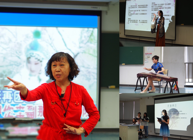 活动中,同学们以丰富多样的形式表演了11个吟诵经典的节目,15级汉语班李沫同学演唱的京剧《卖水》令大家眼前一亮,带领大家一同领略了京剧这一中华文化的艺术瑰宝的魅力,之后吴伟凡老师也即兴用她深厚的京剧功底为大家表演了经典剧目《白蛇传》的片段,现场气氛一度达到高潮;16级汉语班同学们也别出心裁,以陆游《钗头凤》背后故事为题材表演了精彩的舞台剧,服装、台词都颇具韵味,赢得老师同学们的一致好评,也让在场的观众充分了解了那段凄美的爱情故事;17级传播学二班同学、17级汉语班同学以充沛的情感朗诵了中华传统名篇《长恨歌》,并且现场配以古筝弹奏,赋予了传统经典诗文极强的穿透力。同学们的表演充分展示了文传学子传承经典、弘扬经典的良好精神风貌,让现场不时爆发热烈的掌声。