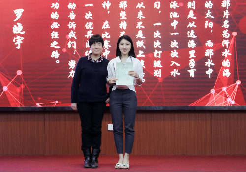 “体育之星”的获得者是2014级汉语国际教育班的罗晓宇。她在大学期间积极参加北京市高校锦标赛、冠军赛,并多次获得100米游泳第一名。精心制作的视频向大家展示了她游泳运动生涯所获得的荣誉和内心的感受,激励大家共同发扬体育精神,强健体魄。