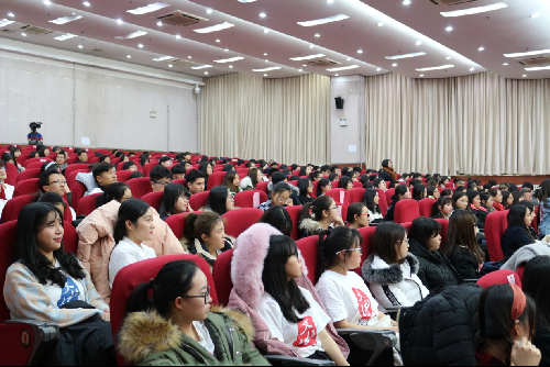 2016级广告学卓越班的张雅蒙荣获“传媒之星”称号,她分享了自己在剧组的工作和生活经历,揭秘了一些特殊场景的拍摄过程。她在传媒行业丰富的实习经历和极富特色的分享赢得同学们的热烈掌声。