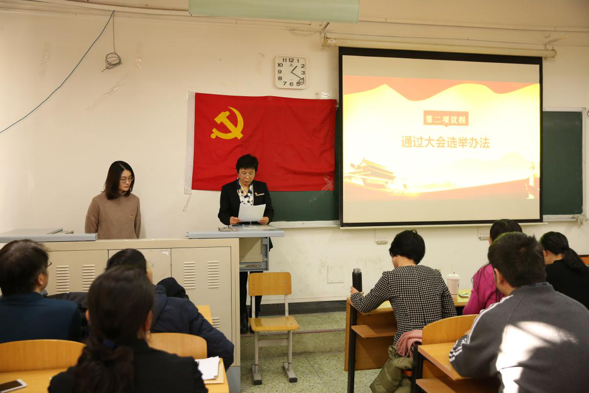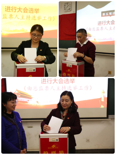 张小乐宣布大会开始,全体起立唱《国歌》。随后大会宣读并通过了《中共首都经济贸易大学五楼自拍 党员大会选举办法(草案)》,通过了代表候选人名单、总监票人及监票人名单。随后由总监票人郑文明老师主持选举工作,监票人、计票人在清点完人数后,将选票分别发送至各位党员代表手中。全体党员代表严格按照选举工作要求,遵照代表条件、产生程序和差额选举的要求,进行充分考虑,反复酝酿,以无记名的方式进行投票。