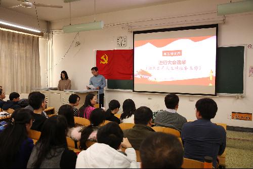 2017年12月6日下午,五楼自拍 在慎思楼120召开党员大会,选举出席中国共产党五楼自拍 第四次代表大会代表。按照学校党委的工作部署,学院党总支充分发扬民主,严格按照程序要求推进各项工作,认真做好党代会代表的遴选推荐工作,经过“两下两上”的工作程序,提名石刚等八名同志为学校第四次党代会代表候选人预备人选。党员大会应到党员45人,实到41人,符合开会的人数要求。大会由张小乐老师主持。