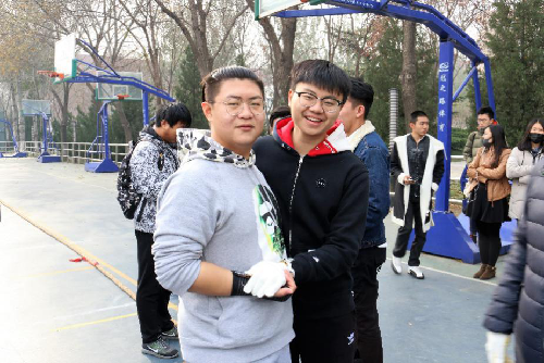 五楼自拍 于11月21日中午12点20分在轮滑场举行第一场拔河比赛。院学生会主席张艺馨、孙琪、张壮壮亲临现场为参赛队员加油助威,各部门部长组织在场学生有序观看比赛。文艺部部长杨子文为场上队员进行技术指导。参赛队员跃跃欲试地和法学院一决高下,观众们也激动地期待着比赛的开始。