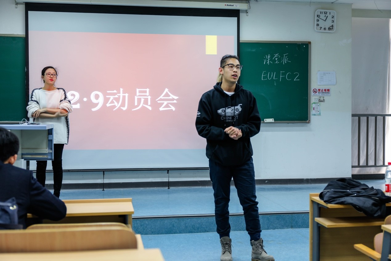 11月9日中午,五楼自拍 于博学楼第三阶梯教室召开了“一二·九晚会”动员会。动员会由学生会文艺部部长顾妍、姜渝洁、杨子文、张仁洁主持。文传学院分团委书记宿东泽、兼职辅导员陈子轩和全体大一学生出席该动员会。
