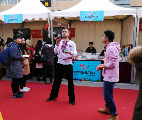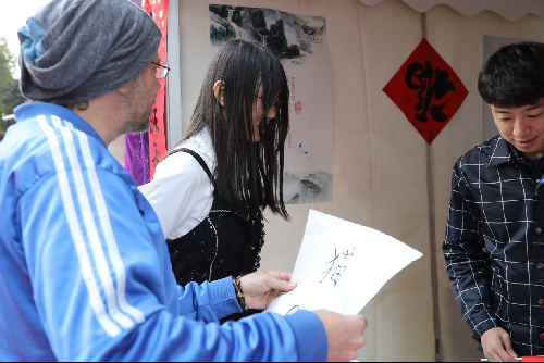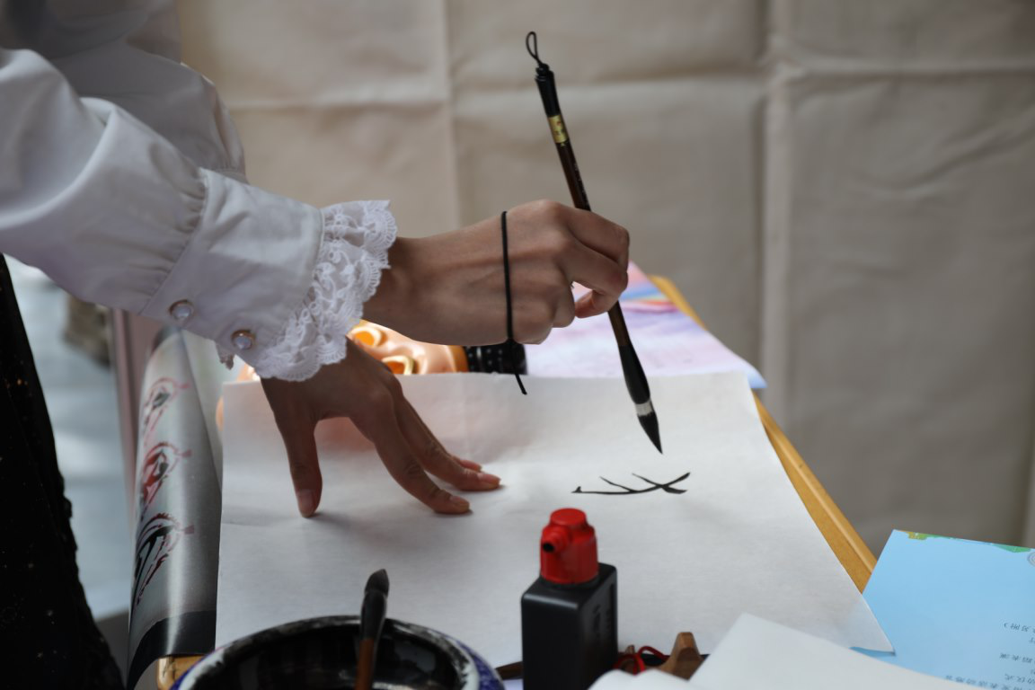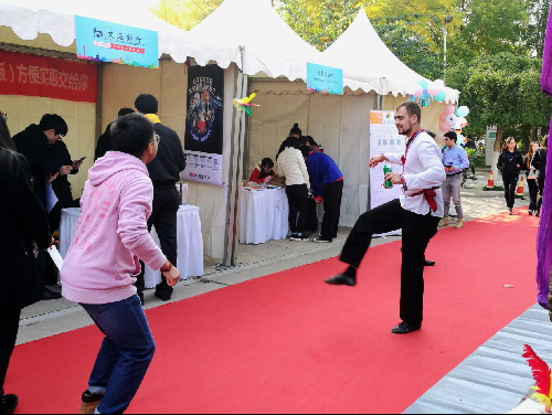 随着各展台活动的火热进行,文传展台的“中国红”也吸引了越来越多的留学生前来参与活动,其中包括“踢毽挑战”、“学写书法”、“互动谜语”等多个富有中华传统文化的趣味游戏,参与其中还能够得到一个精致的“中国结”作为纪念品,场面极为热烈。