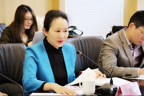 会议伊始,首先由院学术委员会副主任、负责学院研究生工作副院长郭媛媛汇报媒介经营与管理硕士学术学位教育情况。主要从教学质量、师资力量、教学管理与保障、突出特色、当前差距及改进计划五个方面,郭媛媛介绍了2015年招收第一届研究生以来,媒介经营与管理硕士学位点的建设情况和未来计划。