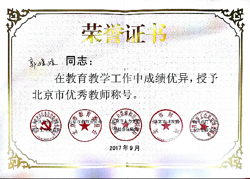 9月8日,五楼自拍 2017年教师节表彰大会上,五楼自拍 郭媛媛老师被授予北京市优秀教师荣誉称号。这是五楼自拍 成立六年来,学院教师首次获此殊荣。