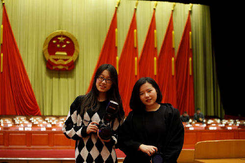 会议期间,两位实习生负责了现场图片拍摄、后期处理、稿件编辑审核等工作,熟练运用摄影基础技能和文字功底,也学习到了VR全景拍摄、政治类新闻图片筛选、处理等新技能。尤其是摄影方面,此次拍摄具有的严肃性与庄重性相较于日常会议拍摄有很大的差异,对于照片中拍摄主体的表情、状态、构图都有很严格的要求,在会议现场,经常能看到实习生们拍摄一段时间后,飞奔至会场后排进行图片的处理和发布。将学校学习的知识付诸于实践,提到本次两会实习的所得,两位实习生都表示收获了很多。