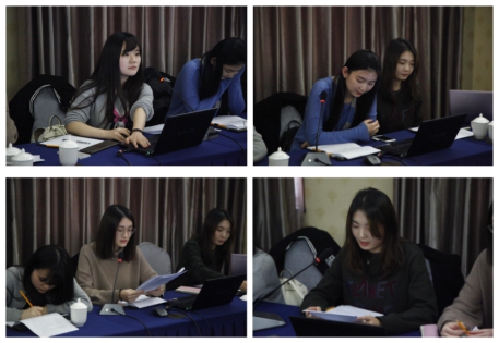 之后,第一届硕士研究生依次向在座的导师们宣讲自己的学术论文。谢烨凤宣讲的论文题目为《台网融合下的真人秀节目发展研究》,她从研究背景、融合实践、融合限制、解决方案四个方面进行阐述,对台网融合的现状进行分析,总结了台网融合的实践特点、形式以及存在的问题,并就问题提出了解决方案;王珂就《高校学生社交媒介使用状况分析及广告投放策略研究》一题,从研究设计与方法、高校学生社交媒介使用状况、使用社交媒介高校学生的消费特点分析、社交媒介广告投放趋势与策略四个部分对论文进行了阐述;沈菁宣讲的论文题为《网络微视频的传播困境及发展研究》,她从研究背景、研究方法、调查结果及传播特点总结、传播困境四个方面进行阐述,并就传播困境提出网络微视频的发展方向及对策。高玙洁就《万达并购AMC的成功因素及对文化传媒企业“走出去”的启示》一题从万达并购AMC的背景与意义、绩效分析、成功因素分析以及对我国文化传媒企业走出去的启示四个方面进行了阐述;高玙洁代替张萌宣讲了题为《“经济日报”手机新闻客户端优化对策研究》的论文,并从“经济日报”新闻客户端发展实践、发展优势、发展瓶颈、优化对策四个方面分别进行了具体的阐述。