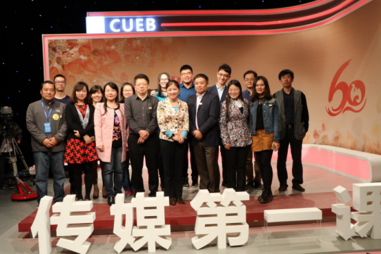 10月16日下午,由首经贸五楼自拍 人文与传媒实验教学中心主办、学生工作办公室协办的电视访谈类节目“传媒第一课”,在人文与传媒实验教学中心演播室正式开拍。学院领导班子,教师和学生代表以及文传学院各级校友代表作为嘉宾参与了此次节目的录制。