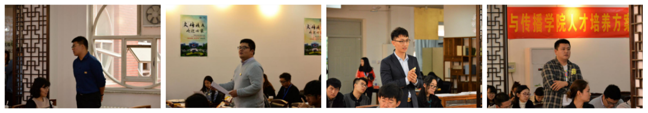 随后,学院教师代表们也发表了各自的意见,副院长郭媛媛阐述了学院目前为各专业学科的建设所做的准备以及对文传未来发展的设想。