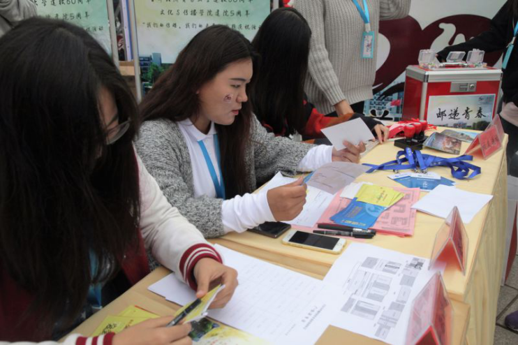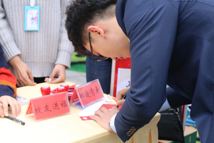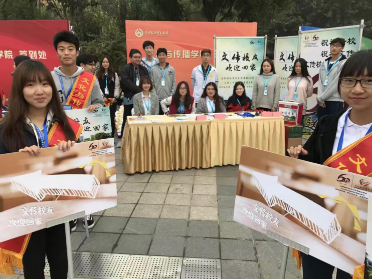 清晨6点半,志愿者就已全部到达各自指定岗位,开始布置现场;8点开始,文传校友陆续到达展台前签到。