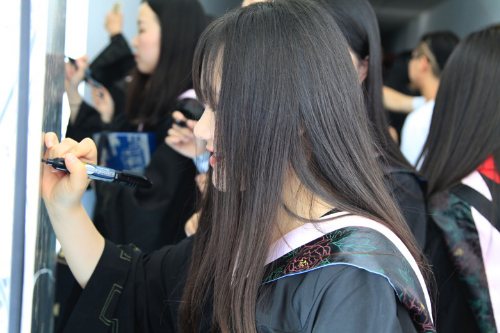 2016年6月25日,在这个热情如火的夏日早晨,五楼自拍 2012届毕业典礼隆重举行。毕业生们在毕业合影大海报上依次签名,进入博学楼阶梯11教室入座,大屏幕上放映着各班级的毕业照,黑板上是手绘的校园图景,写着“愿君安好 执此流年 各天涯”。这是一场传说中简到极致却情怀满满的毕业典礼,院学生会的同学们为这场毕业礼筹备了很久。