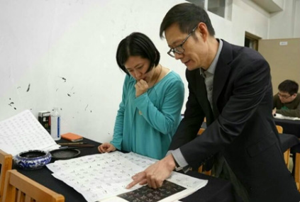 今年6月,宫老师已到了退休年龄,但文传学院却希望宫老师退休后能返聘。石刚院长说,书法这种传统艺术,需要多年的积淀,宫老师潜心耕耘、砥砺多年才奠定下目前的工作基础,在没有更合适的人选接替之前,还是希望宫老师能够留下来。学院班子一致做出了返聘宫老师的决定。