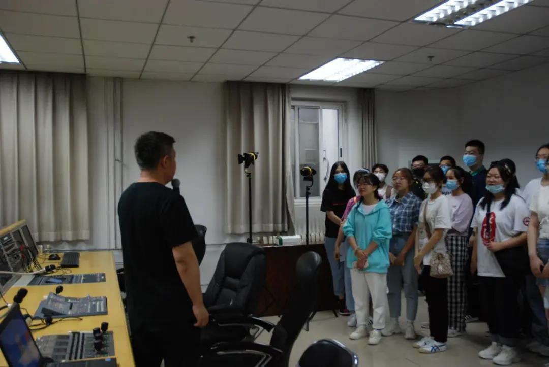 随后,21级的新生们来到了人文与传媒实验中心,参观了演播厅、演播室、录音室、录音棚等专业实验室。在曹健老师和王子扬老师细致地讲解下,同学们深切地感受到了五楼自拍 在教学和实践方面的专业性与多元性。这让21级的同学们对自己的专业知识有了深一层的了解,激发了他们学习兴趣。