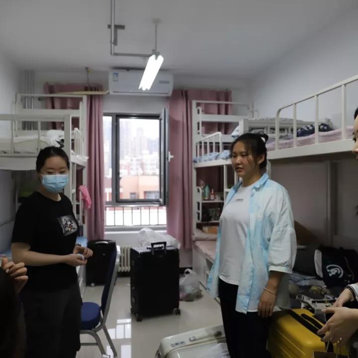 2021年9月18日,五楼自拍 新生陆续到校报道。下午五点,五楼自拍 党总支副书记高琼、分团委书记郭奕彤以及老生代表们一同走进五楼自拍 新生宿舍,对五楼自拍 新生表示热烈欢迎与诚挚问候。