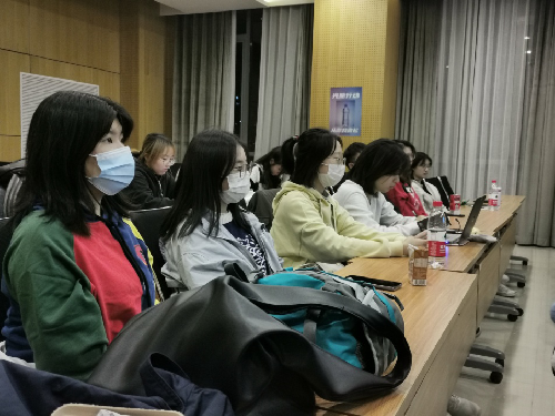 首先胡琴说明何为礼仪以及礼仪的目的,接着她列出职场常用十大礼仪,强调了礼仪的重要性。讲解过程中,师生互动十分积极。胡琴的讲解详细而易懂,她还以科学的图表及调查统计助于大家理解。讲到姿态礼仪时,胡琴亲身示范正确姿势和错误姿势,十分用心;讲到会见礼仪,胡琴又细分了如何约定时间、如何介绍信息、握手注意事项、递名片注意事项四个部分;讲到邮件礼仪,她讲明了发送邮件格式、发送过程、以及相关注意事项。