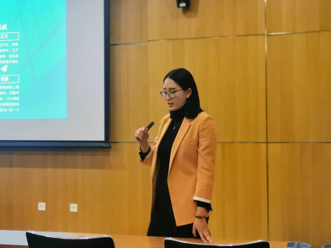 分享会主讲人胡琴,长期从事人力资源工作,有着丰富的经验。当晚,她以“未来职场素质与能力”为题,为文传团学组织各主席和部长带来了一场精彩的分享会。