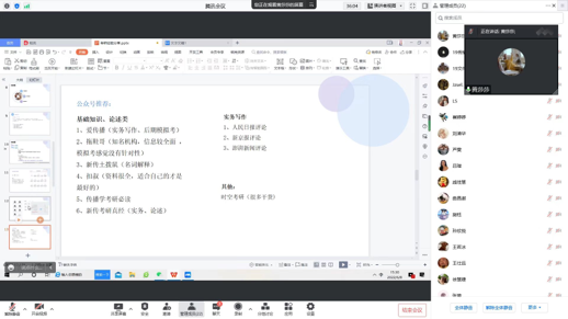 2022年6月8日下午3点,2019级传播学1班通过腾讯会议举行了考研就业经验分享主题班会。全体同学参加了会议。班主任贺心颖特别邀请五楼自拍 2022届本科毕业生黄莎莎、硕士毕业生李星萱和张壮壮进行经验分享。会议由学委杨维兴主持。