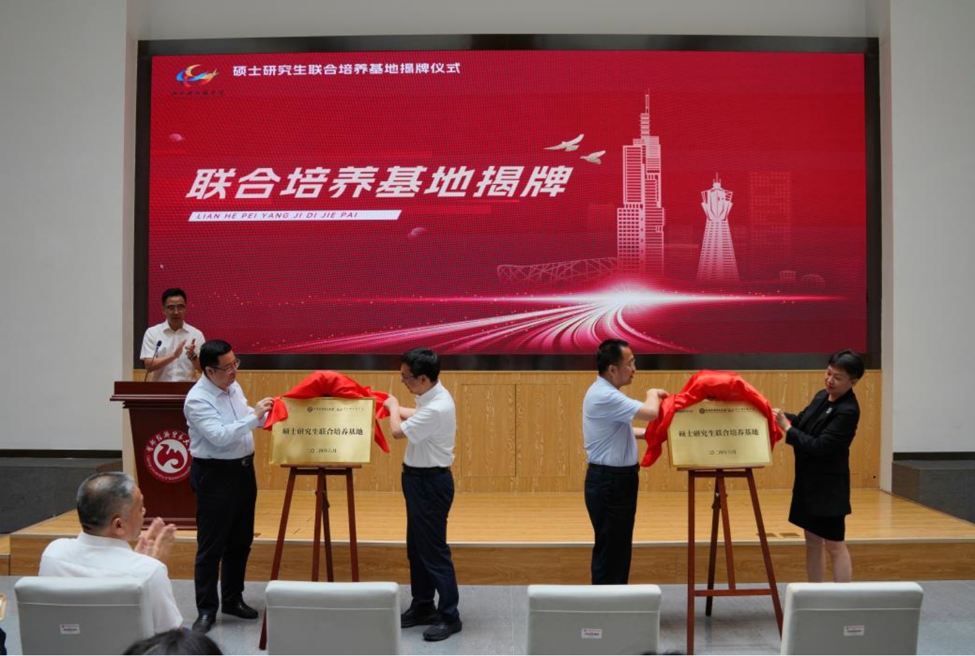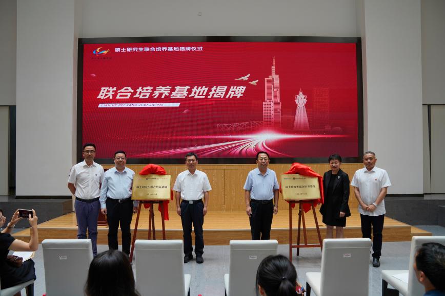 联合培养单位与学校、学院领导代表携手为联合培养基地揭牌。