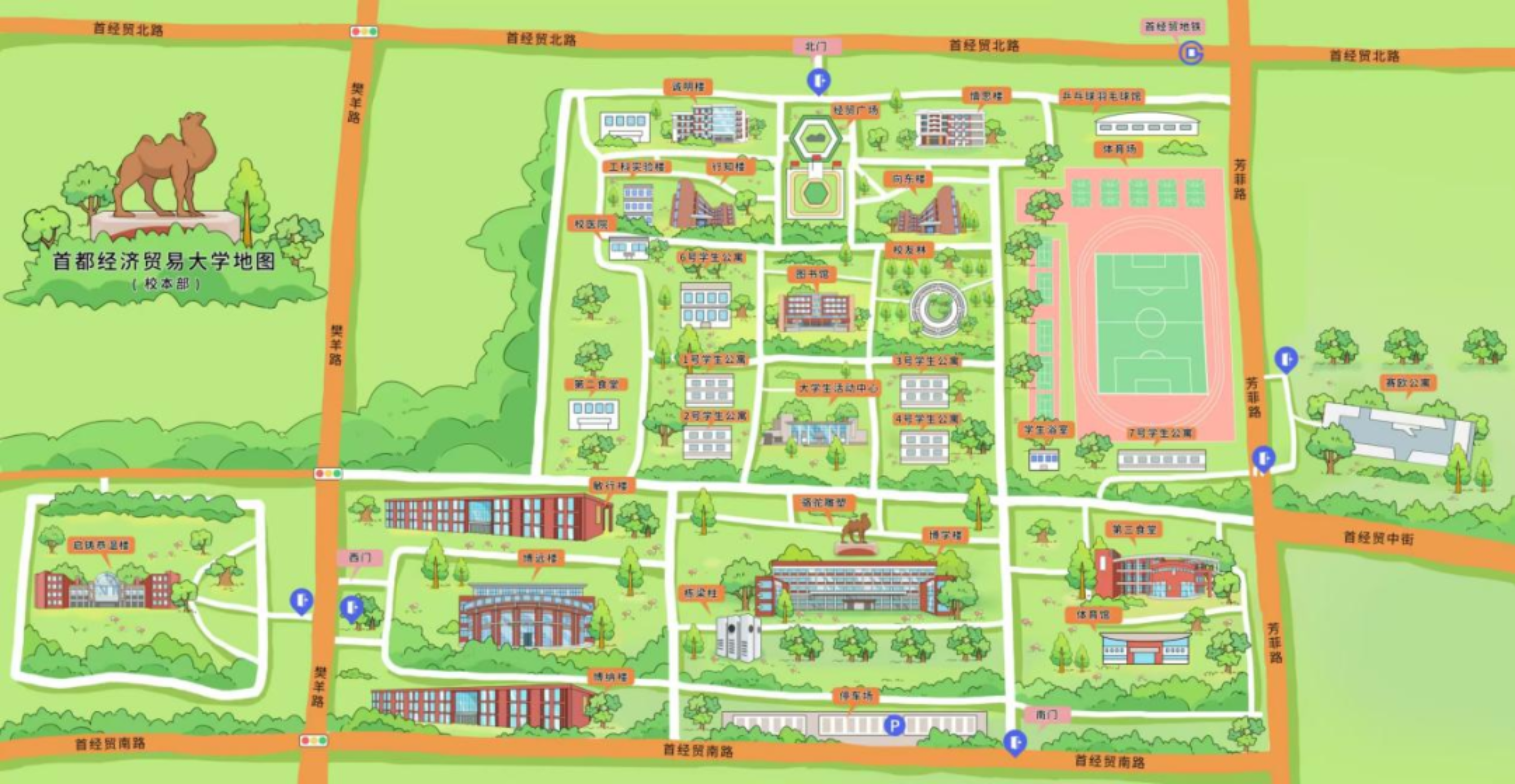 地铁:乘坐10号线(首经贸方向)—首经贸站(D口出到达学校北门/C口出到达塞欧公寓)大约10分钟到达