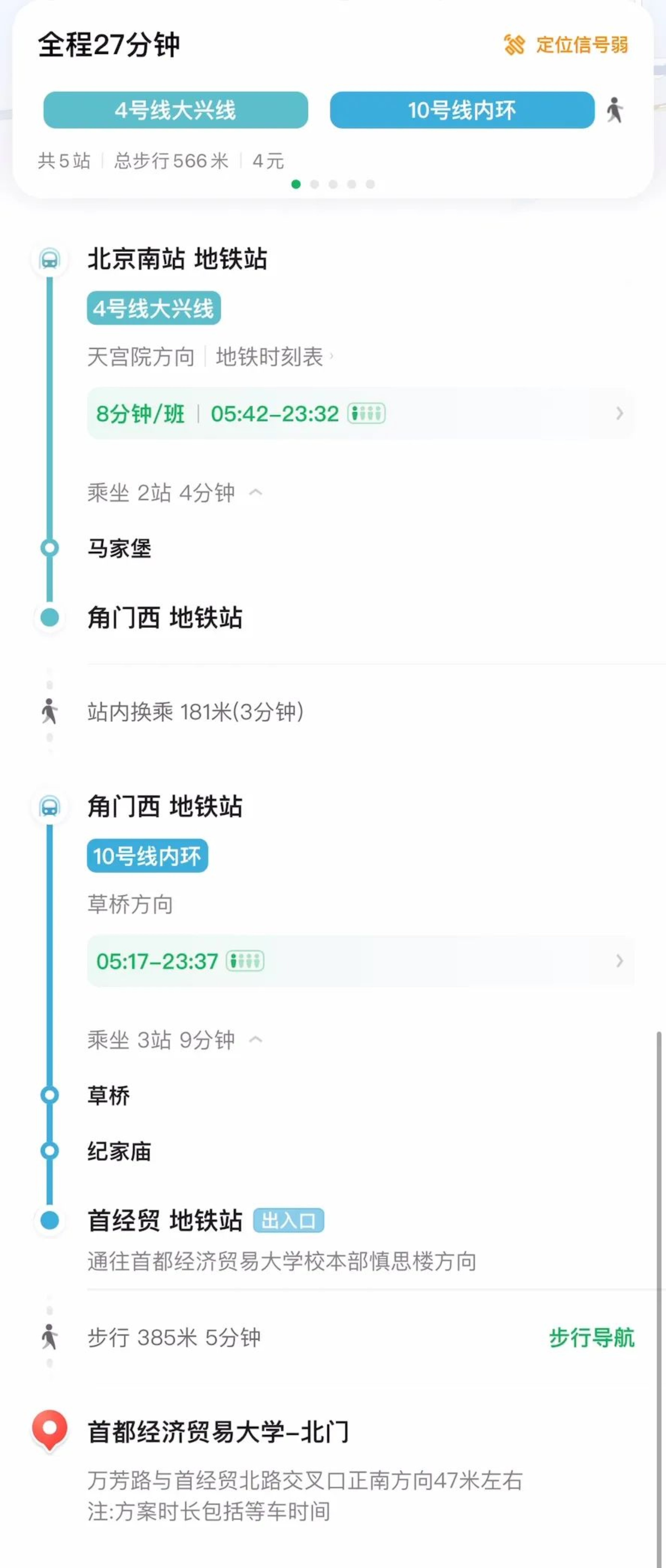 地铁:乘坐4号线西直门站上车—角门西换成10号线(草桥方向)—首经贸站(D口出到达学校北门/C口出到达塞欧公寓)大约46分钟到达