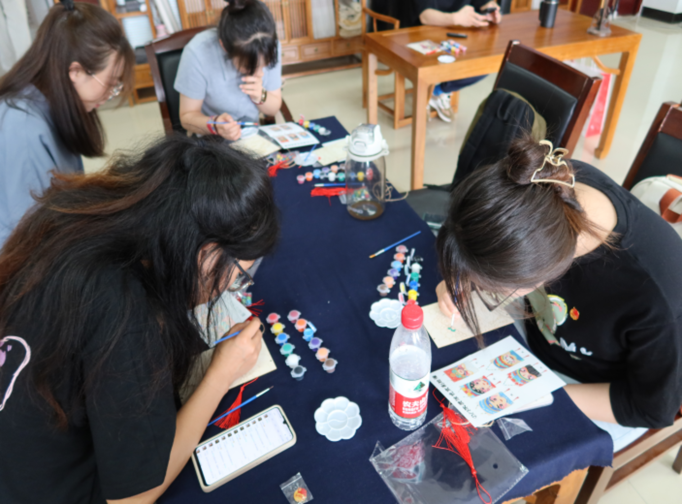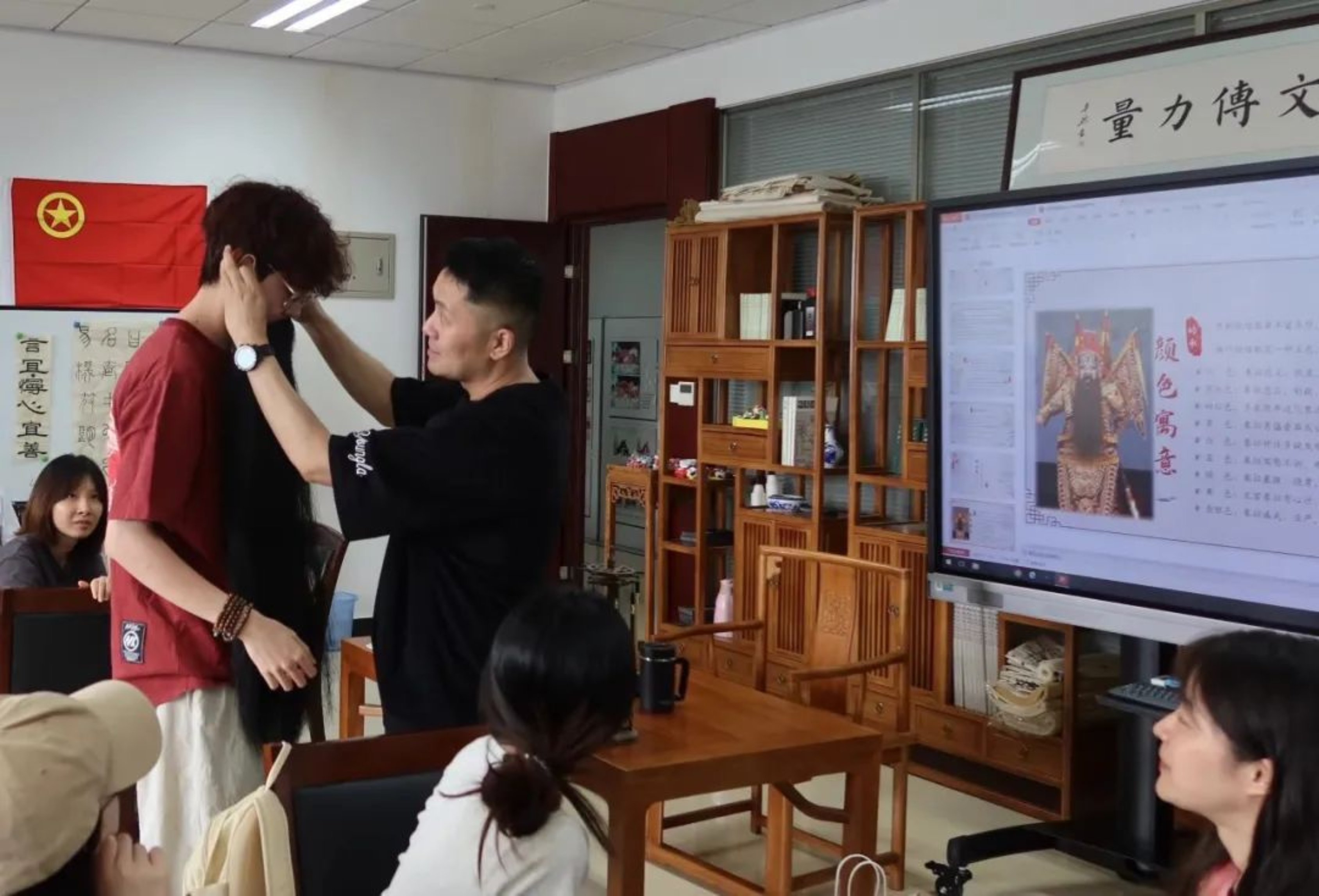 在专家的悉心指导下,同学们纷纷拿起画笔,尽情发挥自己的创意,动手绘制京剧脸谱。他们有的参照传统样式,一笔一划地精心勾勒,力求还原那份古朴韵味;有的则大胆地融入现代元素,以独特的视角和创新的思维进行巧妙构思,让古老的艺术在当下绽放出新的光彩。不一会儿,一幅幅别具一格、充满创意的脸谱作品便跃然纸上。待作品完成后,同学们纷纷自发展示、分享自己的作品,讨论自己在创作过程中的独特心得和深切体会,言辞之间满是对传统文化的热爱与敬意。