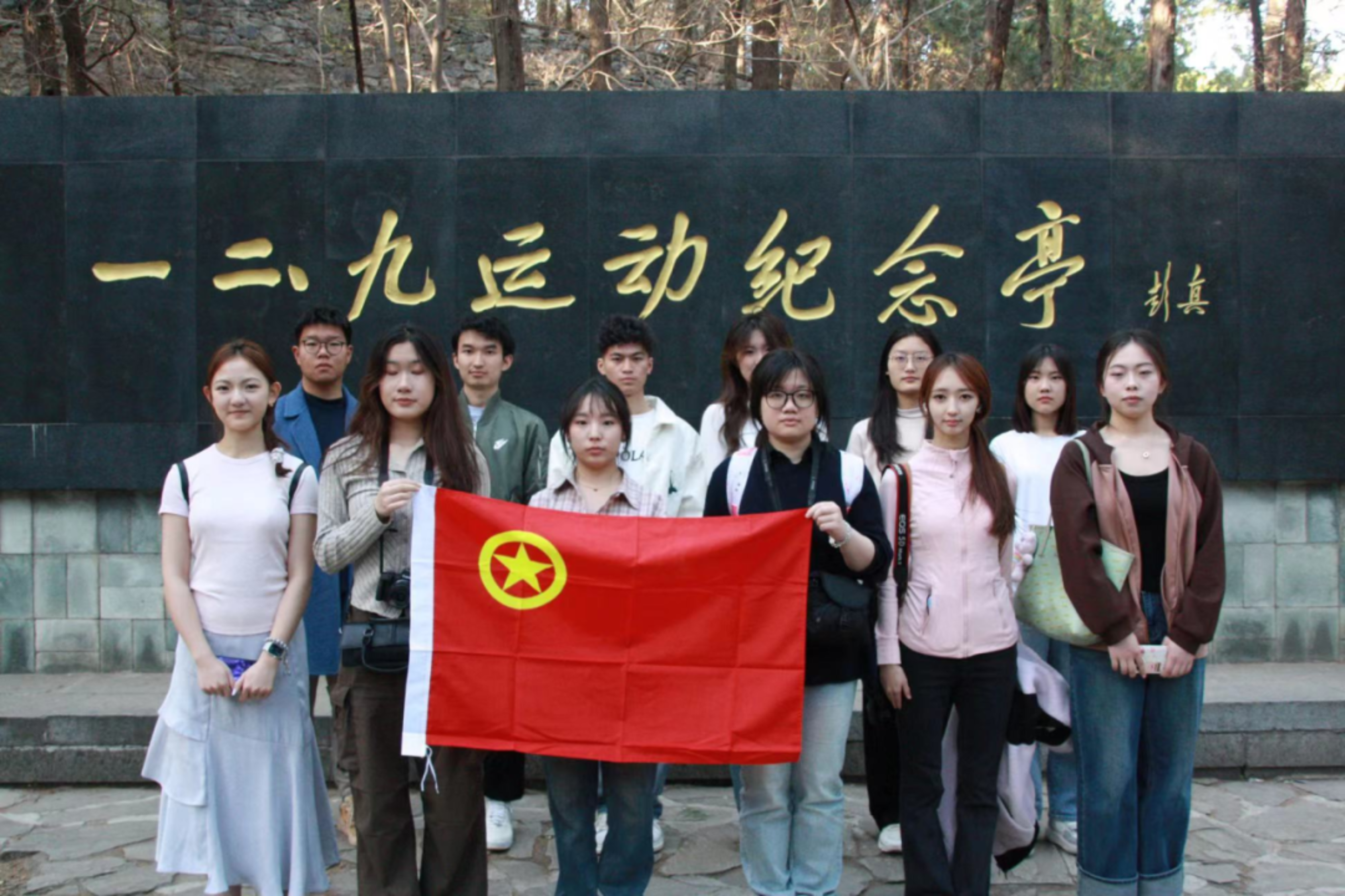同学们认真听讲、仔细观察、积极提问、互动交流,并且吸引许多游客驻足一起参与到班级活动中。通过小组讨论,五班的同学们进一步加深了对历史文化、红色革命精神和植物保护及生态文明建设重要性的理解,在小组讨论中,形成了积极向上的学习氛围。在曹雪芹纪念馆,学委聂家宝同学准备了红楼梦的趣味答题,同学们积极抢答。同学们参观了曹雪芹纪念馆,参观其故居,感受四大名著之一带来的精神震撼。随后,五班同学又来到了梁思礼先生之墓,由杨钰淼与吴可菲同学共同为大家讲解科研工作者的故事,并带着大家向其致敬。活动最后,五班同学参观了一二·九运动的纪念碑,并在团支书的带领下重温了那段峥嵘岁月,五班19位团员高举团旗,在纪念碑前向先辈致敬。