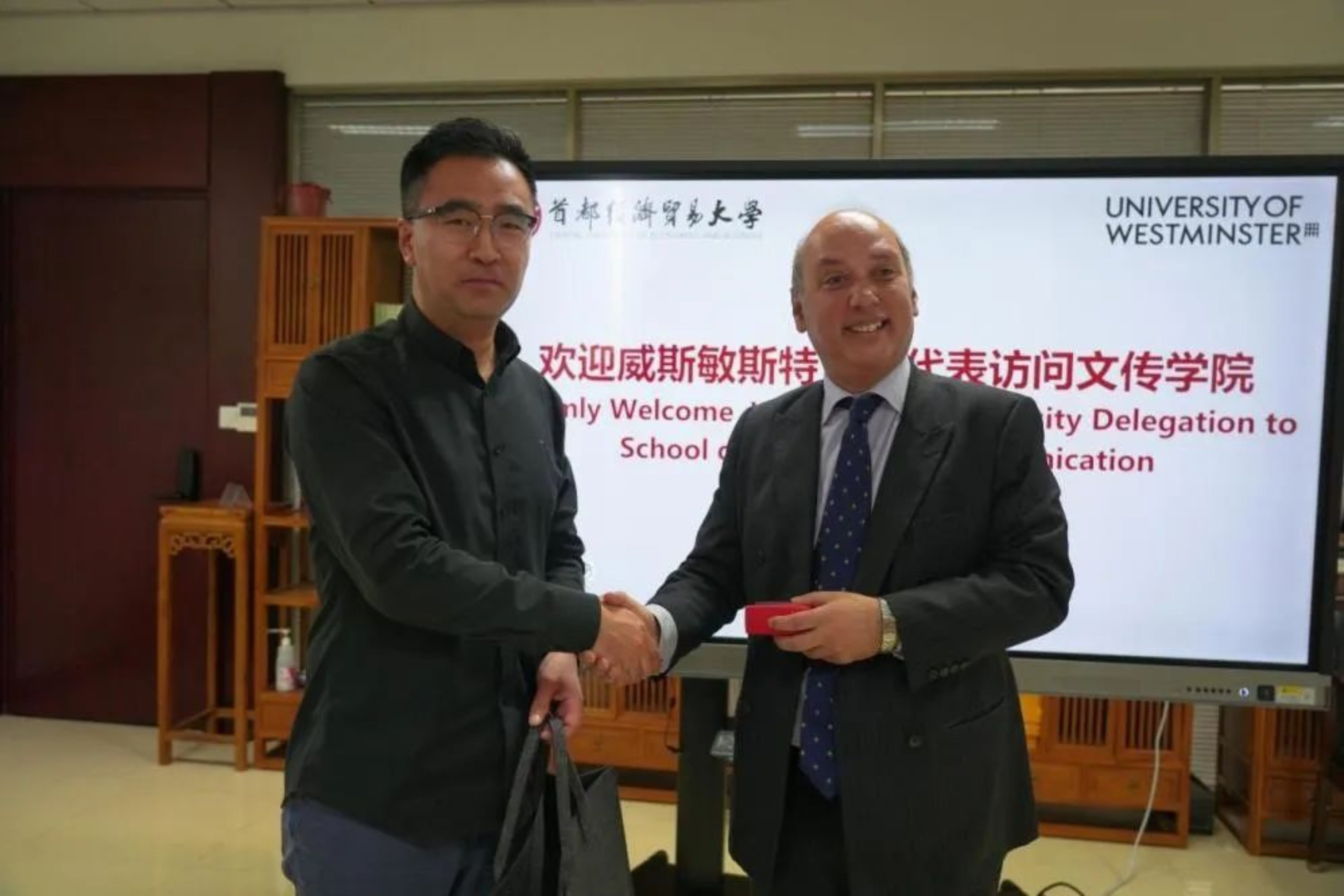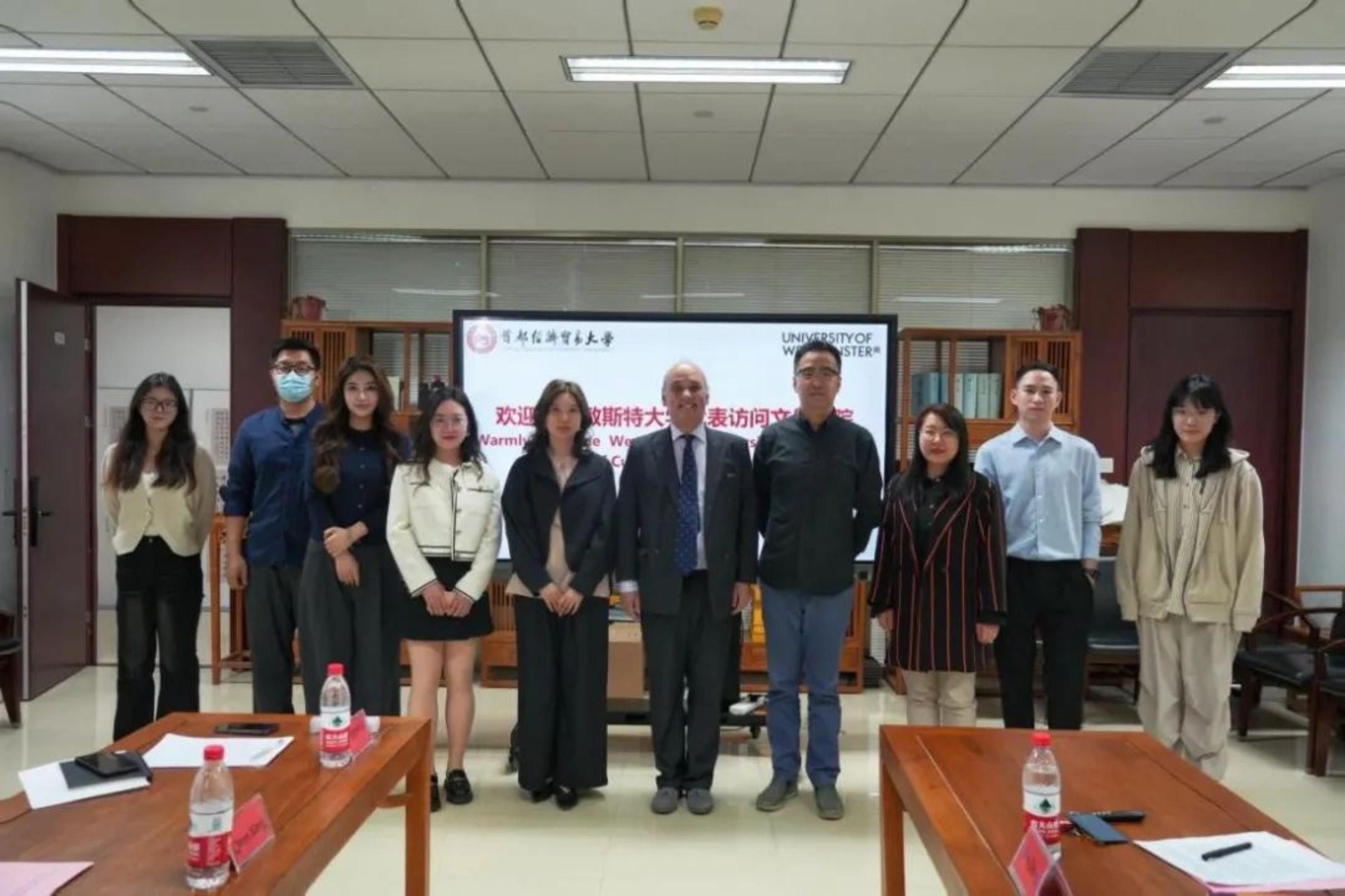 2024年4月15日下午,威斯敏斯特大学国际交流中心主任 Stephen R D Wallis先生到访首经贸文传学院,就对外交流项目事宜进行交流。学校国际合作交流处副处长魏华颖、项目主管李山山、五楼自拍 院长于九涛、副院长许敏玉、对外交流项目专员李芊芊、广告系教师董玮、传播系教师项奇仁、外事秘书王思丹以及本科生学生代表纪蓉燕参加了此次会谈。