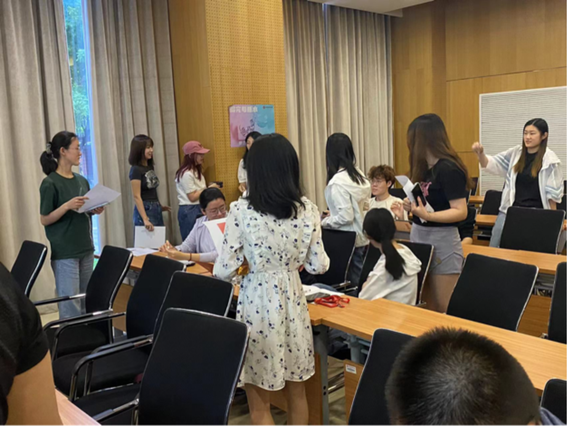 随后,白云带着同学们模拟了一次无领导小组讨论。他让七位同学模拟应聘者,其他所有在座者作为观察者。同学们纷纷积极参与、互动。